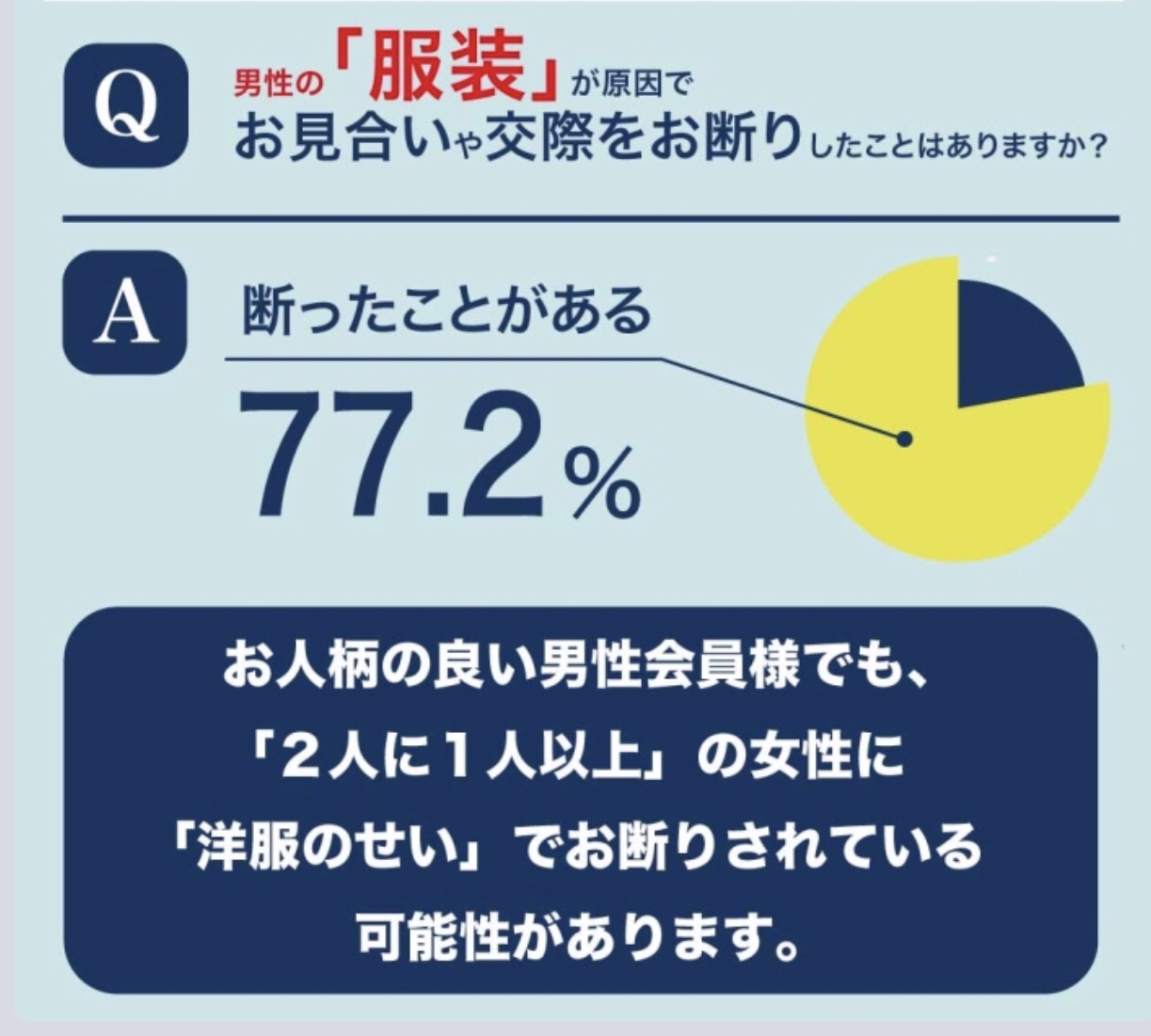 お人柄がいい方でも4人に3人が服装でNGを出されてしまいます